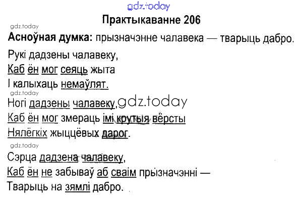На страницах сайта gdz.today вы найдете учебный и вспомогательный материал, направленный на улучшения знаний школьной программы. ГДЗ - онлайн мир знаний Рашальнік да часткі 1. Практыкаванні 206 Учебнику по Белорусскому языку для 5 класса Красней, Несцяровіч Национальный институт образования 2014