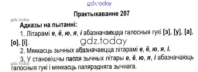 На страницах сайта gdz.today вы найдете учебный и вспомогательный материал, направленный на улучшения знаний школьной программы. ГДЗ - онлайн мир знаний Рашальнік да часткі 1. Практыкаванні 207 Учебнику по Белорусскому языку для 5 класса Красней, Несцяровіч Национальный институт образования 2014