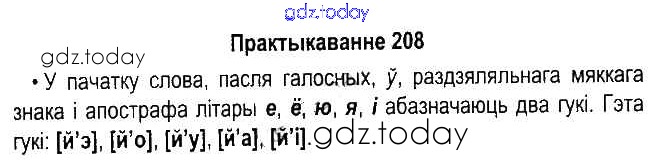 На страницах сайта gdz.today вы найдете учебный и вспомогательный материал, направленный на улучшения знаний школьной программы. ГДЗ - онлайн мир знаний Рашальнік да часткі 1. Практыкаванні 208 Учебнику по Белорусскому языку для 5 класса Красней, Несцяровіч Национальный институт образования 2014