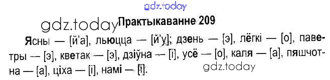 На страницах сайта gdz.today вы найдете учебный и вспомогательный материал, направленный на улучшения знаний школьной программы. ГДЗ - онлайн мир знаний Рашальнік да часткі 1. Практыкаванні 209 Учебнику по Белорусскому языку для 5 класса Красней, Несцяровіч Национальный институт образования 2014