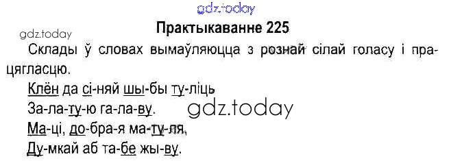 На страницах сайта gdz.today вы найдете учебный и вспомогательный материал, направленный на улучшения знаний школьной программы. ГДЗ - онлайн мир знаний Рашальнік да часткі 1. Практыкаванні 225 Учебнику по Белорусскому языку для 5 класса Красней, Несцяровіч Национальный институт образования 2014