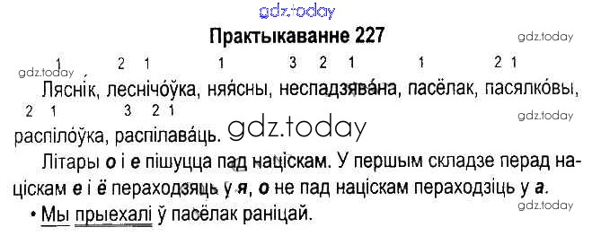 На страницах сайта gdz.today вы найдете учебный и вспомогательный материал, направленный на улучшения знаний школьной программы. ГДЗ - онлайн мир знаний Рашальнік да часткі 1. Практыкаванні 227 Учебнику по Белорусскому языку для 5 класса Красней, Несцяровіч Национальный институт образования 2014