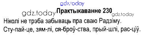 На страницах сайта gdz.today вы найдете учебный и вспомогательный материал, направленный на улучшения знаний школьной программы. ГДЗ - онлайн мир знаний Рашальнік да часткі 1. Практыкаванні 230 Учебнику по Белорусскому языку для 5 класса Красней, Несцяровіч Национальный институт образования 2014