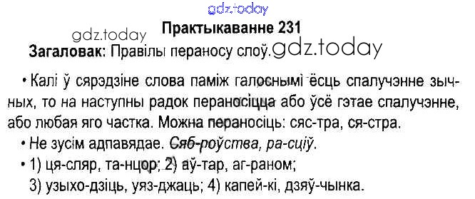 На страницах сайта gdz.today вы найдете учебный и вспомогательный материал, направленный на улучшения знаний школьной программы. ГДЗ - онлайн мир знаний Рашальнік да часткі 1. Практыкаванні 231 Учебнику по Белорусскому языку для 5 класса Красней, Несцяровіч Национальный институт образования 2014