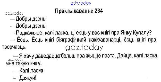 На страницах сайта gdz.today вы найдете учебный и вспомогательный материал, направленный на улучшения знаний школьной программы. ГДЗ - онлайн мир знаний Рашальнік да часткі 1. Практыкаванні 234 Учебнику по Белорусскому языку для 5 класса Красней, Несцяровіч Национальный институт образования 2014
