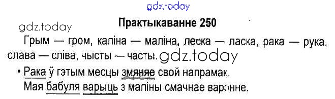 На страницах сайта gdz.today вы найдете учебный и вспомогательный материал, направленный на улучшения знаний школьной программы. ГДЗ - онлайн мир знаний Рашальнік да часткі 1. Практыкаванні 250 Учебнику по Белорусскому языку для 5 класса Красней, Несцяровіч Национальный институт образования 2014