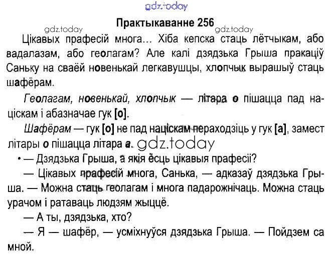 На страницах сайта gdz.today вы найдете учебный и вспомогательный материал, направленный на улучшения знаний школьной программы. ГДЗ - онлайн мир знаний Рашальнік да часткі 1. Практыкаванні 256 Учебнику по Белорусскому языку для 5 класса Красней, Несцяровіч Национальный институт образования 2014