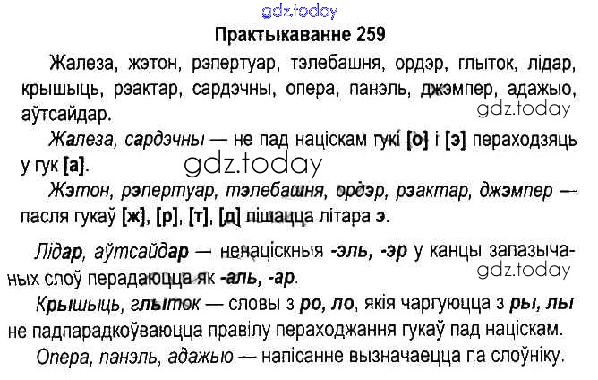 На страницах сайта gdz.today вы найдете учебный и вспомогательный материал, направленный на улучшения знаний школьной программы. ГДЗ - онлайн мир знаний Рашальнік да часткі 1. Практыкаванні 259 Учебнику по Белорусскому языку для 5 класса Красней, Несцяровіч Национальный институт образования 2014