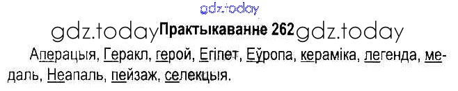 На страницах сайта gdz.today вы найдете учебный и вспомогательный материал, направленный на улучшения знаний школьной программы. ГДЗ - онлайн мир знаний Рашальнік да часткі 1. Практыкаванні 262 Учебнику по Белорусскому языку для 5 класса Красней, Несцяровіч Национальный институт образования 2014