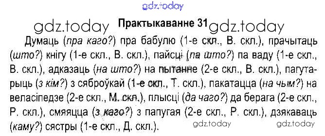 На страницах сайта gdz.today вы найдете учебный и вспомогательный материал, направленный на улучшения знаний школьной программы. ГДЗ - онлайн мир знаний Рашальнік да часткі 1. Практыкаванні 31 Учебнику по Белорусскому языку для 5 класса Красней, Несцяровіч Национальный институт образования 2014