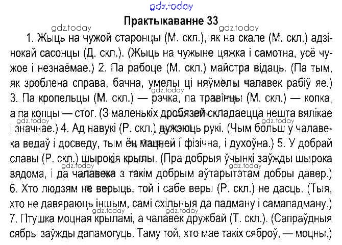 На страницах сайта gdz.today вы найдете учебный и вспомогательный материал, направленный на улучшения знаний школьной программы. ГДЗ - онлайн мир знаний Рашальнік да часткі 1. Практыкаванні 33 Учебнику по Белорусскому языку для 5 класса Красней, Несцяровіч Национальный институт образования 2014