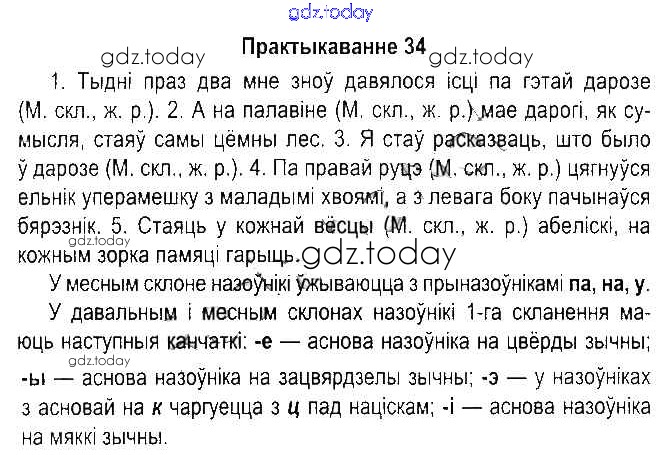 На страницах сайта gdz.today вы найдете учебный и вспомогательный материал, направленный на улучшения знаний школьной программы. ГДЗ - онлайн мир знаний Рашальнік да часткі 1. Практыкаванні 34 Учебнику по Белорусскому языку для 5 класса Красней, Несцяровіч Национальный институт образования 2014
