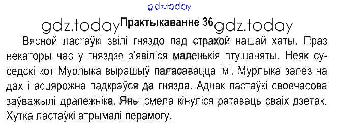 На страницах сайта gdz.today вы найдете учебный и вспомогательный материал, направленный на улучшения знаний школьной программы. ГДЗ - онлайн мир знаний Рашальнік да часткі 1. Практыкаванні 36 Учебнику по Белорусскому языку для 5 класса Красней, Несцяровіч Национальный институт образования 2014