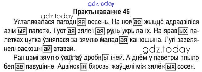 На страницах сайта gdz.today вы найдете учебный и вспомогательный материал, направленный на улучшения знаний школьной программы. ГДЗ - онлайн мир знаний Рашальнік да часткі 1. Практыкаванні 46 Учебнику по Белорусскому языку для 5 класса Красней, Несцяровіч Национальный институт образования 2014