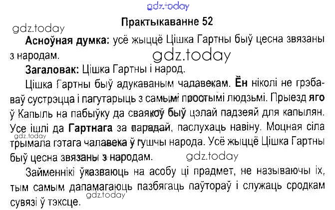 На страницах сайта gdz.today вы найдете учебный и вспомогательный материал, направленный на улучшения знаний школьной программы. ГДЗ - онлайн мир знаний Рашальнік да часткі 1. Практыкаванні 52 Учебнику по Белорусскому языку для 5 класса Красней, Несцяровіч Национальный институт образования 2014