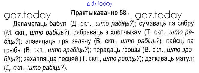 На страницах сайта gdz.today вы найдете учебный и вспомогательный материал, направленный на улучшения знаний школьной программы. ГДЗ - онлайн мир знаний Рашальнік да часткі 1. Практыкаванні 58 Учебнику по Белорусскому языку для 5 класса Красней, Несцяровіч Национальный институт образования 2014