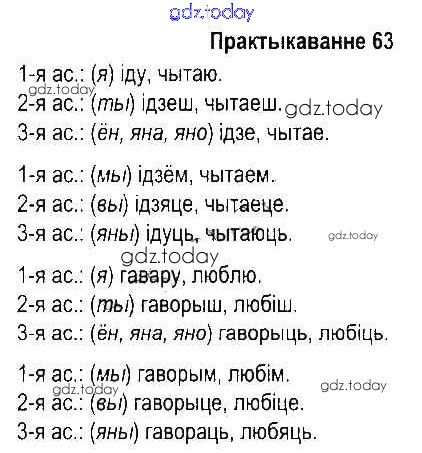На страницах сайта gdz.today вы найдете учебный и вспомогательный материал, направленный на улучшения знаний школьной программы. ГДЗ - онлайн мир знаний Рашальнік да часткі 1. Практыкаванні 63 Учебнику по Белорусскому языку для 5 класса Красней, Несцяровіч Национальный институт образования 2014