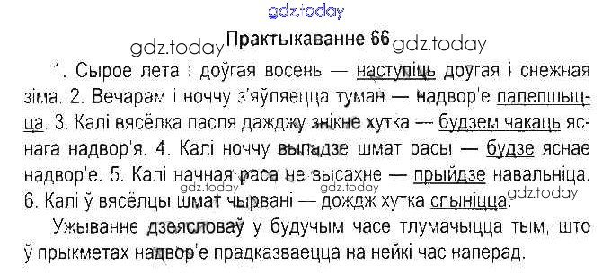 На страницах сайта gdz.today вы найдете учебный и вспомогательный материал, направленный на улучшения знаний школьной программы. ГДЗ - онлайн мир знаний Рашальнік да часткі 1. Практыкаванні 66 Учебнику по Белорусскому языку для 5 класса Красней, Несцяровіч Национальный институт образования 2014