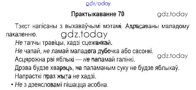 На страницах сайта gdz.today вы найдете учебный и вспомогательный материал, направленный на улучшения знаний школьной программы. ГДЗ - онлайн мир знаний Рашальнік да часткі 1. Практыкаванні 70 Учебнику по Белорусскому языку для 5 класса Красней, Несцяровіч Национальный институт образования 2014