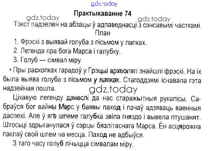 На страницах сайта gdz.today вы найдете учебный и вспомогательный материал, направленный на улучшения знаний школьной программы. ГДЗ - онлайн мир знаний Рашальнік да часткі 1. Практыкаванні 74 Учебнику по Белорусскому языку для 5 класса Красней, Несцяровіч Национальный институт образования 2014