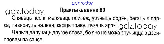 На страницах сайта gdz.today вы найдете учебный и вспомогательный материал, направленный на улучшения знаний школьной программы. ГДЗ - онлайн мир знаний Рашальнік да часткі 1. Практыкаванні 80 Учебнику по Белорусскому языку для 5 класса Красней, Несцяровіч Национальный институт образования 2014