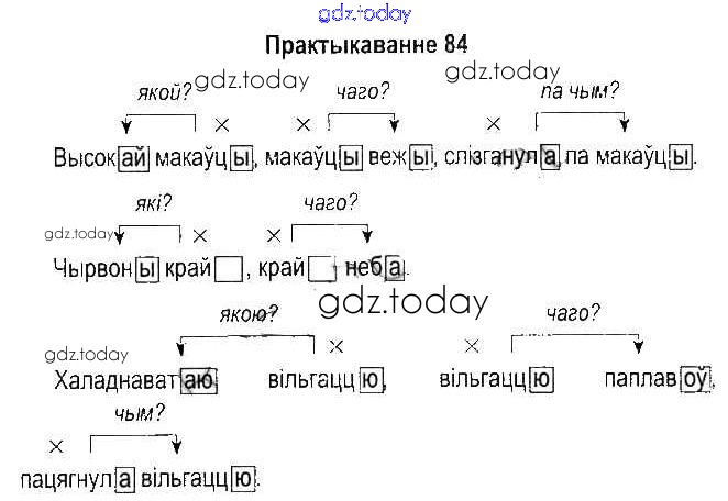 На страницах сайта gdz.today вы найдете учебный и вспомогательный материал, направленный на улучшения знаний школьной программы. ГДЗ - онлайн мир знаний Рашальнік да часткі 1. Практыкаванні 84 Учебнику по Белорусскому языку для 5 класса Красней, Несцяровіч Национальный институт образования 2014