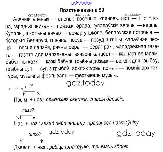 На страницах сайта gdz.today вы найдете учебный и вспомогательный материал, направленный на улучшения знаний школьной программы. ГДЗ - онлайн мир знаний Рашальнік да часткі 1. Практыкаванні 90 Учебнику по Белорусскому языку для 5 класса Красней, Несцяровіч Национальный институт образования 2014