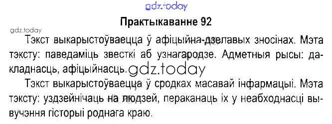 На страницах сайта gdz.today вы найдете учебный и вспомогательный материал, направленный на улучшения знаний школьной программы. ГДЗ - онлайн мир знаний Рашальнік да часткі 1. Практыкаванні 92 Учебнику по Белорусскому языку для 5 класса Красней, Несцяровіч Национальный институт образования 2014