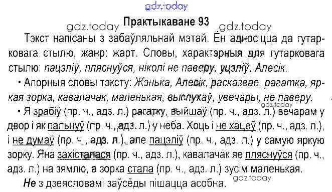 На страницах сайта gdz.today вы найдете учебный и вспомогательный материал, направленный на улучшения знаний школьной программы. ГДЗ - онлайн мир знаний Рашальнік да часткі 1. Практыкаванні 93 Учебнику по Белорусскому языку для 5 класса Красней, Несцяровіч Национальный институт образования 2014