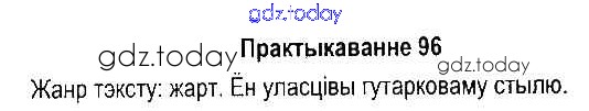 На страницах сайта gdz.today вы найдете учебный и вспомогательный материал, направленный на улучшения знаний школьной программы. ГДЗ - онлайн мир знаний Рашальнік да часткі 1. Практыкаванні 96 Учебнику по Белорусскому языку для 5 класса Красней, Несцяровіч Национальный институт образования 2014