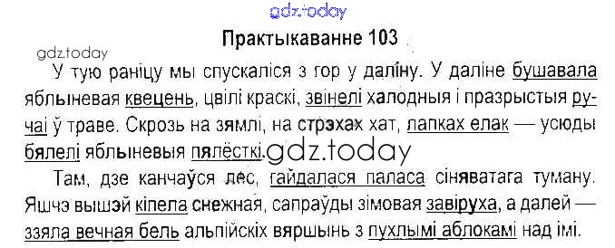 На страницах сайта gdz.today вы найдете учебный и вспомогательный материал, направленный на улучшения знаний школьной программы. ГДЗ - онлайн мир знаний Рашальнік да часткі 2. Практыкаванні 103 Учебнику по Белорусскому языку для 5 класса Красней, Несцяровіч Национальный институт образования 2014