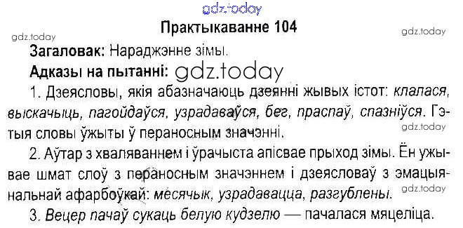 Ответы к Рашальнік да часткі 2. Практыкаванні 104 Учебнику по Белорусскому языку для 5 класса Красней, Несцяровіч Национальный институт образования 2014