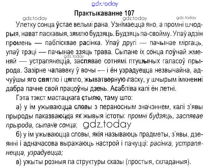 На страницах сайта gdz.today вы найдете учебный и вспомогательный материал, направленный на улучшения знаний школьной программы. ГДЗ - онлайн мир знаний Рашальнік да часткі 2. Практыкаванні 107 Учебнику по Белорусскому языку для 5 класса Красней, Несцяровіч Национальный институт образования 2014