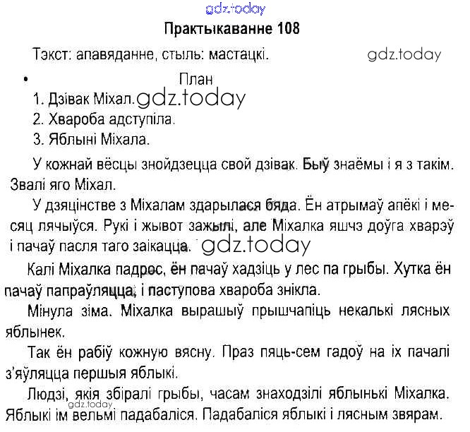 На страницах сайта gdz.today вы найдете учебный и вспомогательный материал, направленный на улучшения знаний школьной программы. ГДЗ - онлайн мир знаний Рашальнік да часткі 2. Практыкаванні 108 Учебнику по Белорусскому языку для 5 класса Красней, Несцяровіч Национальный институт образования 2014