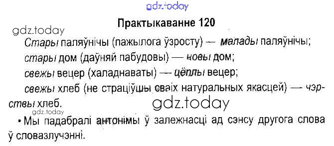 На страницах сайта gdz.today вы найдете учебный и вспомогательный материал, направленный на улучшения знаний школьной программы. ГДЗ - онлайн мир знаний Рашальнік да часткі 2. Практыкаванні 120 Учебнику по Белорусскому языку для 5 класса Красней, Несцяровіч Национальный институт образования 2014
