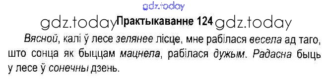 На страницах сайта gdz.today вы найдете учебный и вспомогательный материал, направленный на улучшения знаний школьной программы. ГДЗ - онлайн мир знаний Рашальнік да часткі 2. Практыкаванні 124 Учебнику по Белорусскому языку для 5 класса Красней, Несцяровіч Национальный институт образования 2014