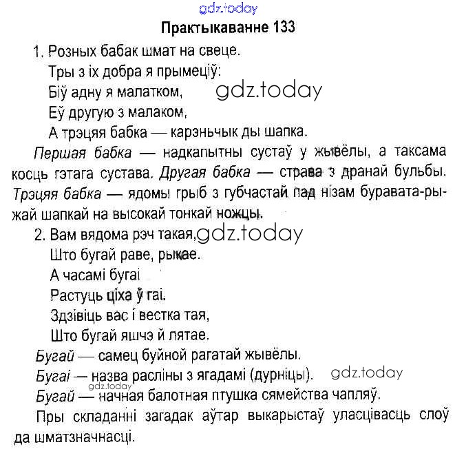 На страницах сайта gdz.today вы найдете учебный и вспомогательный материал, направленный на улучшения знаний школьной программы. ГДЗ - онлайн мир знаний Рашальнік да часткі 2. Практыкаванні 133 Учебнику по Белорусскому языку для 5 класса Красней, Несцяровіч Национальный институт образования 2014