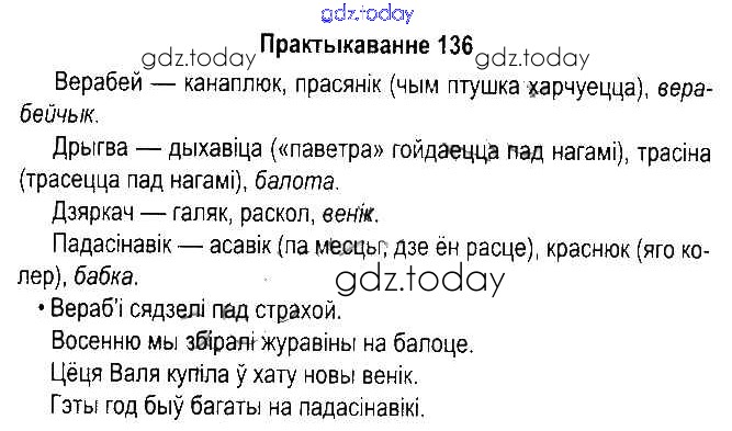 Ответы к Рашальнік да часткі 2. Практыкаванні 136 Учебнику по Белорусскому языку для 5 класса Красней, Несцяровіч Национальный институт образования 2014