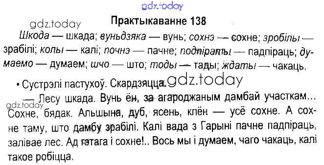 Ответы к Рашальнік да часткі 2. Практыкаванні 138 Учебнику по Белорусскому языку для 5 класса Красней, Несцяровіч Национальный институт образования 2014