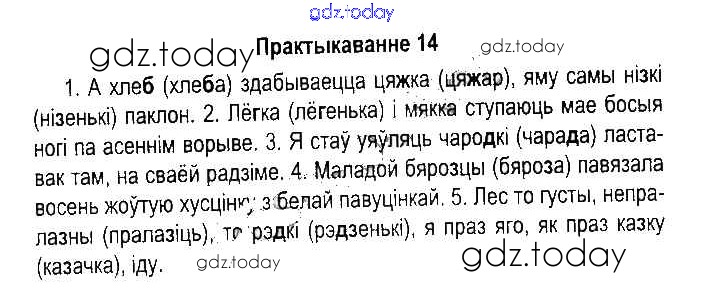 На страницах сайта gdz.today вы найдете учебный и вспомогательный материал, направленный на улучшения знаний школьной программы. ГДЗ - онлайн мир знаний Рашальнік да часткі 2. Практыкаванні 14 Учебнику по Белорусскому языку для 5 класса Красней, Несцяровіч Национальный институт образования 2014