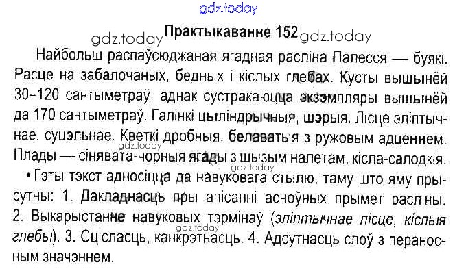Ответы к Рашальнік да часткі 2. Практыкаванні 152 Учебнику по Белорусскому языку для 5 класса Красней, Несцяровіч Национальный институт образования 2014