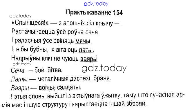 Ответы к Рашальнік да часткі 2. Практыкаванні 154 Учебнику по Белорусскому языку для 5 класса Красней, Несцяровіч Национальный институт образования 2014