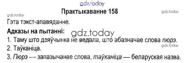 Ответы к Рашальнік да часткі 2. Практыкаванні 158 Учебнику по Белорусскому языку для 5 класса Красней, Несцяровіч Национальный институт образования 2014