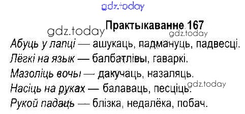 На страницах сайта gdz.today вы найдете учебный и вспомогательный материал, направленный на улучшения знаний школьной программы. ГДЗ - онлайн мир знаний Рашальнік да часткі 2. Практыкаванні 167 Учебнику по Белорусскому языку для 5 класса Красней, Несцяровіч Национальный институт образования 2014