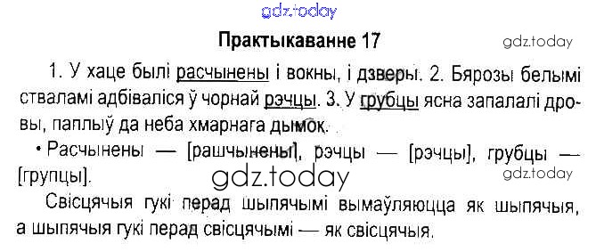 На страницах сайта gdz.today вы найдете учебный и вспомогательный материал, направленный на улучшения знаний школьной программы. ГДЗ - онлайн мир знаний Рашальнік да часткі 2. Практыкаванні 17 Учебнику по Белорусскому языку для 5 класса Красней, Несцяровіч Национальный институт образования 2014