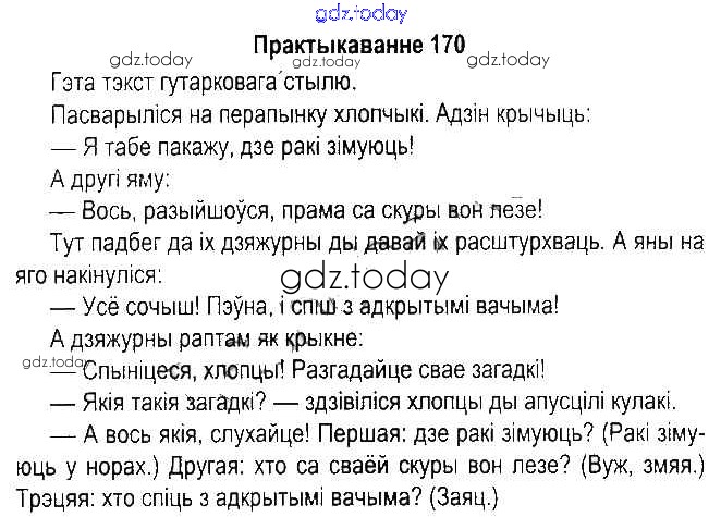 На страницах сайта gdz.today вы найдете учебный и вспомогательный материал, направленный на улучшения знаний школьной программы. ГДЗ - онлайн мир знаний Рашальнік да часткі 2. Практыкаванні 170 Учебнику по Белорусскому языку для 5 класса Красней, Несцяровіч Национальный институт образования 2014