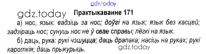 На страницах сайта gdz.today вы найдете учебный и вспомогательный материал, направленный на улучшения знаний школьной программы. ГДЗ - онлайн мир знаний Рашальнік да часткі 2. Практыкаванні 171 Учебнику по Белорусскому языку для 5 класса Красней, Несцяровіч Национальный институт образования 2014