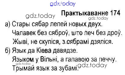 На страницах сайта gdz.today вы найдете учебный и вспомогательный материал, направленный на улучшения знаний школьной программы. ГДЗ - онлайн мир знаний Рашальнік да часткі 2. Практыкаванні 174 Учебнику по Белорусскому языку для 5 класса Красней, Несцяровіч Национальный институт образования 2014
