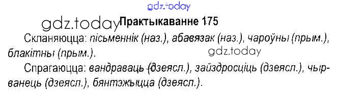 На страницах сайта gdz.today вы найдете учебный и вспомогательный материал, направленный на улучшения знаний школьной программы. ГДЗ - онлайн мир знаний Рашальнік да часткі 2. Практыкаванні 175 Учебнику по Белорусскому языку для 5 класса Красней, Несцяровіч Национальный институт образования 2014