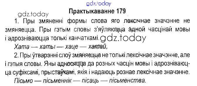 На страницах сайта gdz.today вы найдете учебный и вспомогательный материал, направленный на улучшения знаний школьной программы. ГДЗ - онлайн мир знаний Рашальнік да часткі 2. Практыкаванні 179 Учебнику по Белорусскому языку для 5 класса Красней, Несцяровіч Национальный институт образования 2014